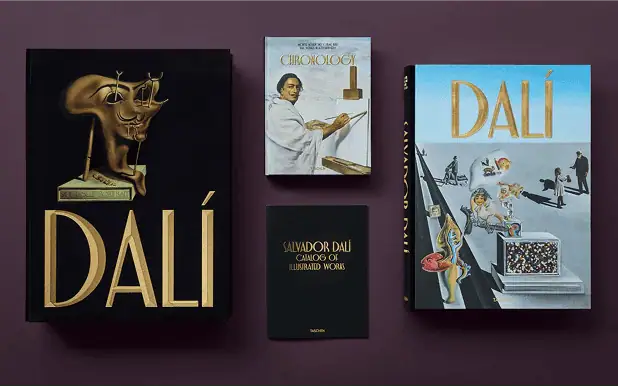 El primero es un libro en formato Baby-SUMO con reproducciones de las obras clave de Dalí en un tamaño y detalle nunca antes llevados a imprenta, que permite contemplar cada una de las exquisitas pinceladas del artista.